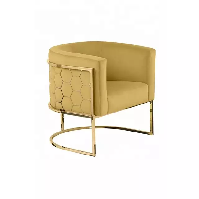 Silla giratoria de terciopelo para hotel, muebles de estilo de ocio, para vestíbulo de hotel. Este silla para recepción de hotel está fabricada con tela amarilla, azul, mostaza, gris, … tiene una forma semicircular. Destaca por sus patas semicirculares de metal. Es una silla moderna y llamativa que aporta un toque de color a la decoración de la recepción del hotel.
